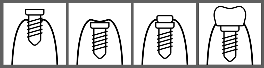 Odsłonięcie implantu i założenie śruby gojącej – po około 3-6 miesiącach (w zależności od rodzaju wprowadzonego implantu, jakości kości oraz indywidualnej zdolności gojenia się tkanki kostnej) pacjent udaje się na zabieg odsłonięcia implantu i wymiany śruby zamykającej na śrubę gojącą. Przeprowadza się również kontrolne badanie rentgenowskie w celu oceny osteointegracji (stopnia zrośnięcia się implantu z tkanką kostną).